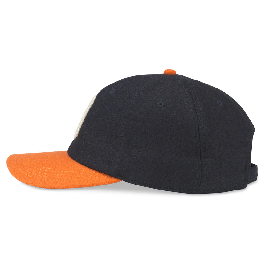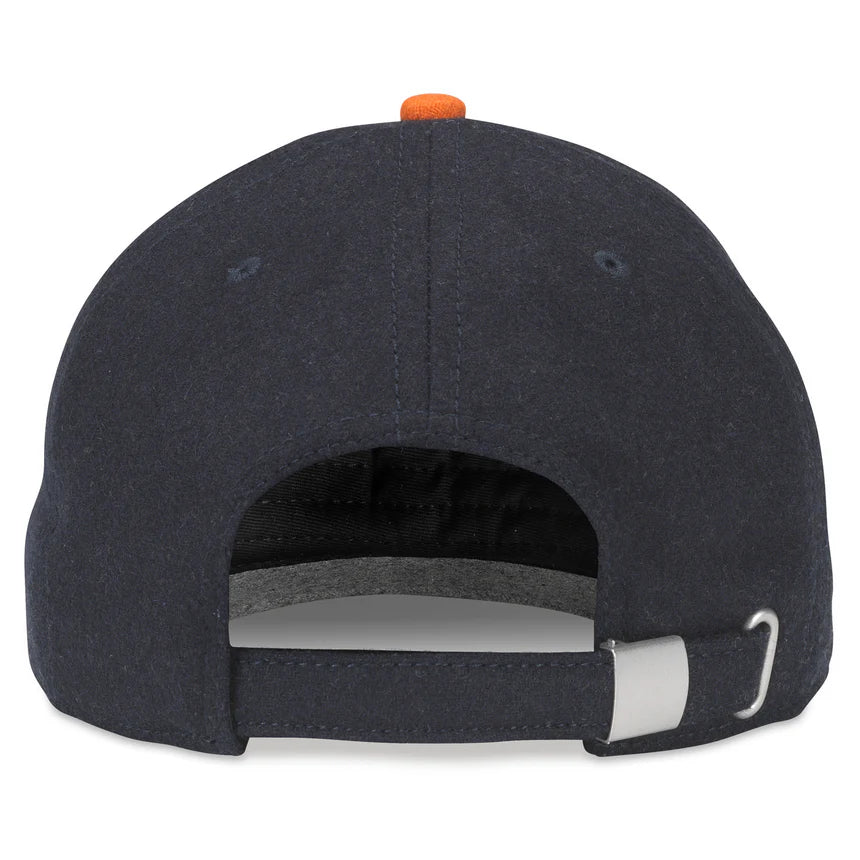 40% wool / 60% poly flannel 6-panel retro cap with soft light buckram crown and slight pre-curved visor. Front logo is lofted cotton thread embroidery. Features custom sew-in label identifying team logo inception inside of cap. Adjustable self-fabric back strap with matte finish metal buckle.